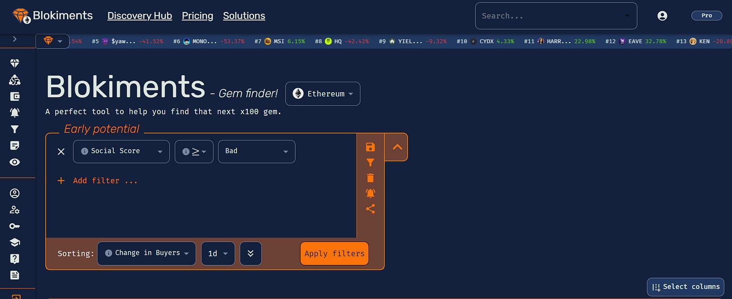 Open the main Blokiments dashboard (we will call it Discovery Hub from now on) and choose the pro mode in the right corner. You should see something like this: